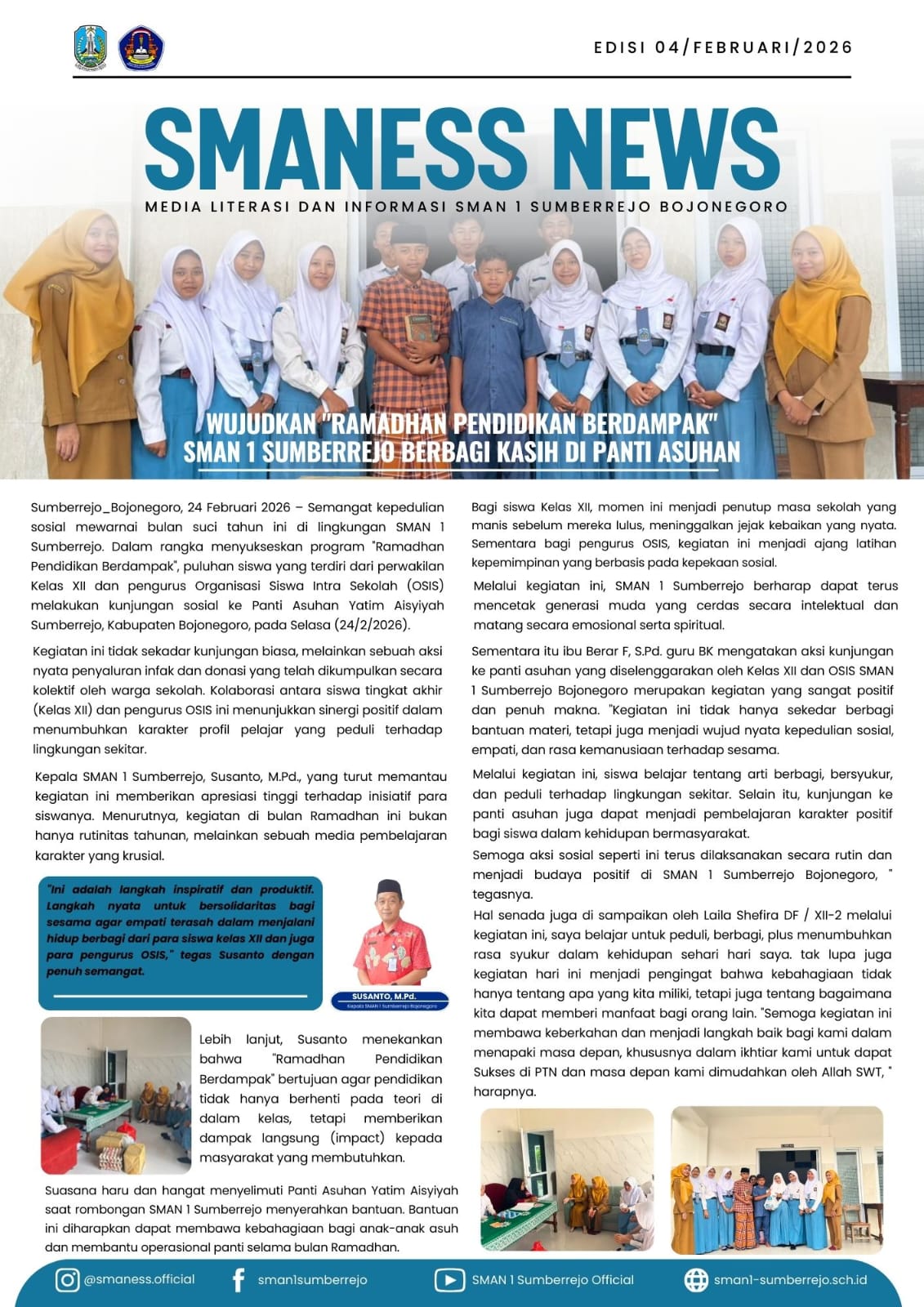 WUJUDKAN "RAMADHAN PENDIDIKAN BERDAMPAK" SMAN 1 SUMBERREJO BERBAGI KASIH DI PANTI ASUHAN Super Administrator 24 Feb 2026 0 Komentar